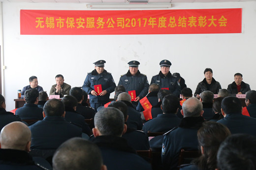 2月8日下午,公司召开2017年度总结表彰大会。 公司副总陈全生同志回顾总结了2017年工作,明确了2018年坚持“抓管理、树形象、夯基础、谋发展”的工作思路,牢固树立“安全第一”的思想,以良好的形象,积极进取的精神,求实务实的作风,努力打造无锡保安优质服务品牌。会上通报表彰了先进班组、十佳班长、十佳队员、先进个人,号召全体保安队员要向受到表彰奖励的先进集体和先进个人学习。部门管理人员及保安队员、职工代表共100余人出席了会议。