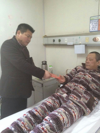 1月20日,新区分公司开展走访慰问活动,大队长钦有绪、钱勇军和茅锡平先后来到保安队员家中和医院里,看望慰问困难队员,了解他们的身体情况和家庭生活情况,传递公司的关心关爱,给予节日的祝福,并送上慰问金。