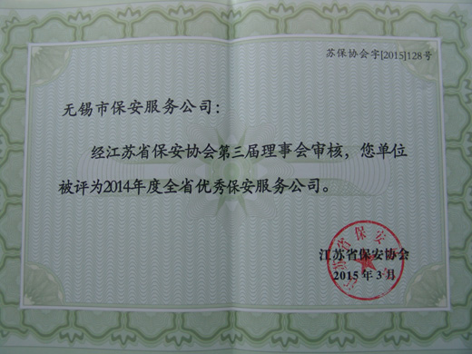 公司荣获“2014年度全省优秀保安服务公司”等称号