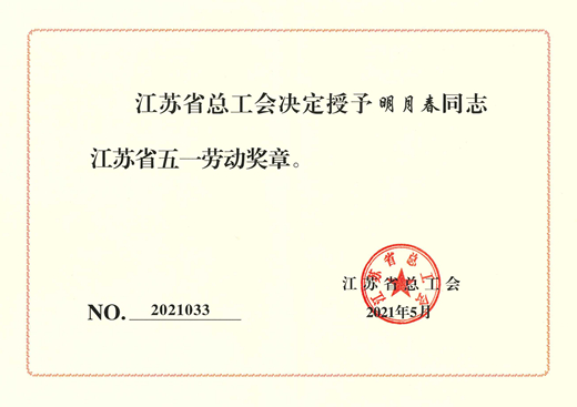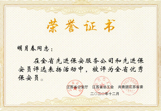 日前,我公司派驻江苏信息职业技术学院保安班班长明月春同志荣获江苏省“全省优秀保安员”称号,并被授予“江苏省五一劳动奖章”。明月春同志自1993年入职以来,近30年如一日,在岗爱岗,刻苦钻研保安业务,认真履行保安职责,工作严谨认真,出色完成了各项安保任务,多次被评为“无锡市优秀保安员”,获得“江苏省优秀保安员”等荣誉称号。