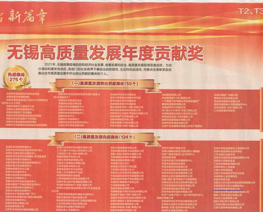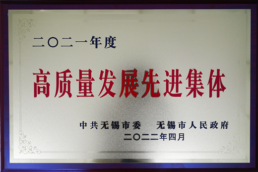 公司荣获无锡市“2021年度高质量发展先进集体”称号