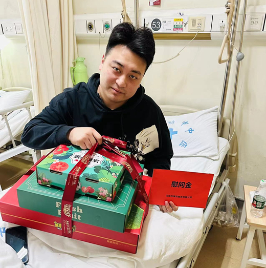近日,受公司领导委托,第一分公司管理人员到医院探望刚做完取钢钉手术的职工。大家亲切询问了他的治疗情况,劝慰其放松心情,祝愿早日康复,并代表公司向他送上慰问品和慰问金,把公司领导和同事的关怀送到了他心中。