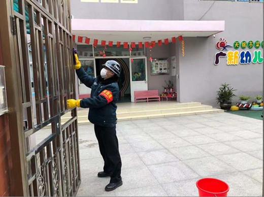 在这次突如其来的新型冠状病毒感染的肺炎疫情阻击战中,锡惠分公司派驻广新幼儿园队员杜和宝,在平凡的岗位上,忠诚值守,测量体温,认真排查每一位进入园内的人员,并做好解释工作。每天多次对园内的保安室、大门、楼梯扶手等区域进行消毒,对每个活动室进行开窗通风,按时进行臭氧消毒,保障校园的安全卫生。杜和宝在抗击疫情工作中工作扎实、认真、负责,赢得了园领导的广泛赞扬。