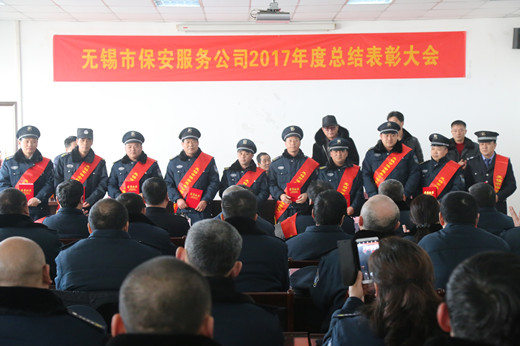 2月8日下午,公司召开2017年度总结表彰大会。 公司副总陈全生同志回顾总结了2017年工作,明确了2018年坚持“抓管理、树形象、夯基础、谋发展”的工作思路,牢固树立“安全第一”的思想,以良好的形象,积极进取的精神,求实务实的作风,努力打造无锡保安优质服务品牌。会上通报表彰了先进班组、十佳班长、十佳队员、先进个人,号召全体保安队员要向受到表彰奖励的先进集体和先进个人学习。部门管理人员及保安队员、职工代表共100余人出席了会议。