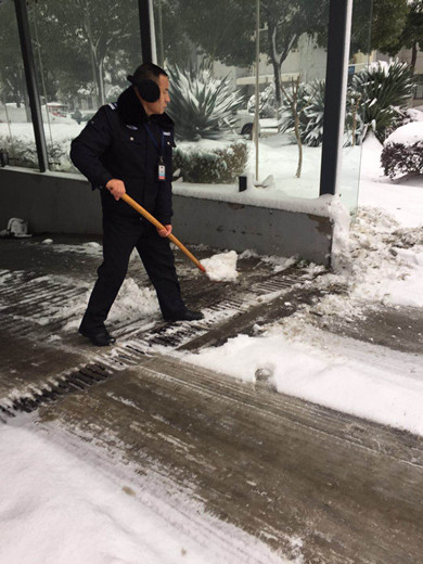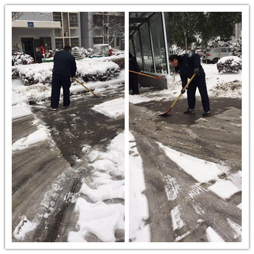 近日,无锡迎来了2018年第一场大雪,厚厚的积雪为出行带来了诸多不便,为确保道路安全畅通,公司各保安班组积极行动起来,开展除雪活动,保安员们顶着风雪清扫道路积雪,确保服务单位人员安全出行。