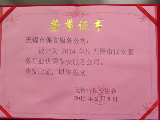 公司荣获“2014年度优秀保安服务公司”